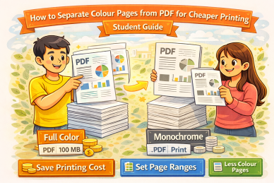 Many students unknowingly print entire PDF files in colour even when only a few pages actually need colour. This significantly increases printing cost. This guide explains how separating colour pages from a PDF helps reduce printing expenses without losing important visuals.
