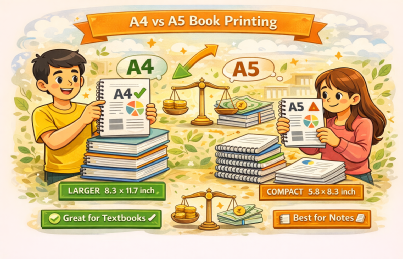 Choosing the right book size affects reading comfort, portability and printing cost. Students often confuse A4 and A5 sizes when printing notes or textbooks. This guide explains the differences and helps you choose the most suitable size for your needs.